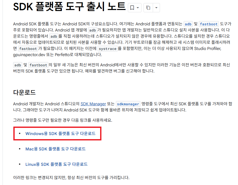 URL : https://developer.android.com/tools/releases/platform-tools?hl=ko